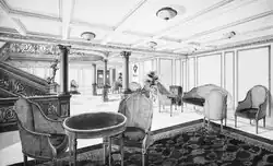 Im kleinen Treppenhaus der Titanic vor dem Eingang des À-la-carte-Restaurants befand sich ein Empfangsraum, in dem sich Passagiere vor dem Essen treffen und Platz nehmen konnten.