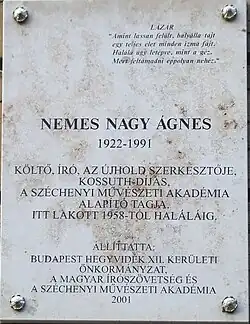 Ágnes Nemes Nagy (* 3. Januar 1922 in Budapest; † 23. August 1991 ebenda) war eine ungarische Autorin und Übersetzerin und eine bedeutende Lyrikerin.