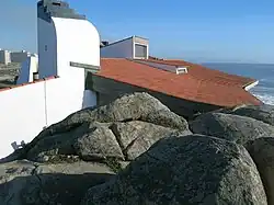 Die ungewöhnliche Homogenität von Bauwerk und Landschaft betont Siza Vieira durch die Materialien: der Sichtbeton besteht aus einem sehr körnigen Zement, dem der zerstoßene Fels der Küste beigemengt ist. Dadurch entsteht eine erstaunliche Wirkung der Einbettung des ebenen Gebäudes in die zerklüfteten Felsen.