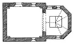 An das nahezu quadratische Langhaus der Kapelle schließt sich ein eingezogener Chor mit polygonalem Fünfachtelschluss an. Das gesamte Bauwerk misst 9,80 m Länge und 5 m Breite. Über dem Westteil liegt ein barocker Dachreiter. Das Langhaus ist flachgedeckt und der Chor rippengewölbt. Bei Bauuntersuchungen wurde 1960 Tuffmauerwerk aus dem 12. Jahrhundert aufgedeckt, welches bis zur ehemaligen Traufhöhe erhalten ist. Ausgrabungen ergaben für den ursprünglichen eingezogenen Chorraum Ausmaße von nur 1,10 m Länge und eine eingeschnürte halbrunde Apsis. Das Traufgesims des Chors gliederte ein Rundbogenfries. In den Langhauswänden befanden sich je zwei hoch ansetzende Rundbogenfenster, welche auf der Südseite rekonstruiert wurden. Eine Zeichnung von 1893 zeigt noch ein gotisches Lanzettfenster in der Südwand. Eine niedrige kreisrunde Öffnung in der Südwand wurde als Beichtfenster gedeutet.