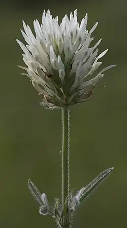 Die Blütezeit reicht von Mai bis September. Die langgestielten, endständigen Blütenstände haben die Form von kugeligen Köpfchen. Die zwittrigen Blüten haben einen schwachen Honigduft. Die Kelchröhre ist zehnnervig. Die gelblich-weiße Krone besitzt die typische Form der Schmetterlingsblüte und ist 7 bis 12 mm lang. Die Hülsenfrucht wird von Kelch und vertrockneter Krone eingeschlossen.