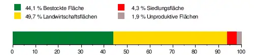 Es besteht zu 44,1 % aus bestockter Fläche, zu 49,7 % aus Landwirtschaftsfläche, zu 4,3 % aus Siedlungsfläche und zu 1,9 % aus unproduktiven Flächen.