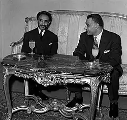 Kaiser Haile Selassie und Ägyptens Präsident Nasser (rechts) in Addis Abeba, zur Gründung der Organisation für Afrikanische Einheit 1963. Im Anschluss brach Äthiopien seine diplomatischen Beziehungen zu Portugal ab.