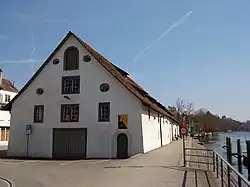 Bis zum Bau der Eisenbahnlinien um 1860 war die Schifflände von Schaffhausen während Jahrhunderten ein florierender Umschlagplatz für Salz.[2] Schaffhausen verfügte zeitweise über das grösste Salzdepot der Eidgenossenschaft. Das Salz stammte hauptsächlich aus Tirol und Bayern. Nebst dem äusseren Salzstadel zeugen heute noch an der Schifflände der Schweizerhof sowie der Güterhof von dieser florierenden Zeit.