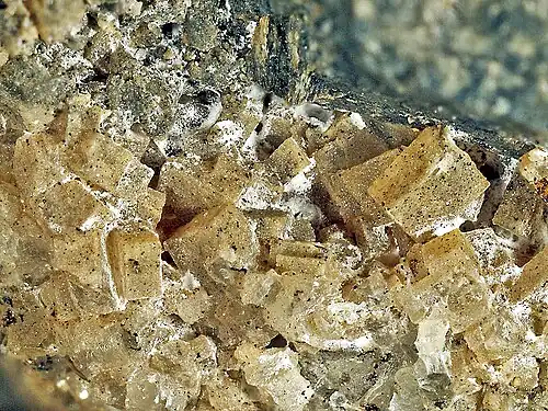 - ↑ Martin Okrusch, Siegfried Matthes: Mineralogie. Eine Einführung in die spezielle Mineralogie, Petrologie und Lagerstättenkunde. 7., vollständig überarbeitete und aktualisierte Auflage. Springer, Berlin [u. a.] 2005, ISBN 3-540-23812-3, S. 87.