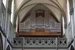 Im Oktober 1951 beschloss die Kirchenbaukommission den Kauf einer neuen Orgel die durch die Firma E. A. Röthinger, Strasbourg, auf der verstärkten Empore errichtet und am 29. März 1953 eingeweiht wurde. Das Instrument hat einen Freipfeifenprospekt und steht auf einem abgestützten Orgelpodest. Der Spieltisch mit elektrischer Traktur steht unterhalb links an der Wand und Emporenbrüstung. Die Orgel umfasst 27 Register mit Schleifladen auf zwei Manualen und Pedal.[8][9]