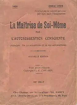 - ↑ Emile Coué: Autosuggestion. AT Verlag, Aarau und München 2012, 3. Aufl. 2018, S. 115.