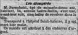 Parzudaki schoss sich in der Avenue Ledru-Rollin mit einem Revolver fünf Kugel in den Kopf und verstarb auf dem Weg ins Krankenhaus.