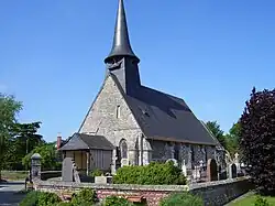 Die Kirche Saint-Pierre wurde im 12. Jahrhundert erbaut. Ihr Schutzpatron ist Simon Petrus. Sie unterstand im Mittelalter und Ancien Régime (Ende des 16. Jahrhunderts bis 1789) dem Seigneur der Ortschaft. Im 16. Jahrhundert wurde die Kirche vergrößert, die Südmauer des Kirchenschiffs und der erste Abschnitt der Nordmauer wurden erneuert. Die neuen Mauerteile sind mit Mustern aus dunklem und hellem Feuerstein dekoriert. Die Wappen, die in der Nordmauer dargestellt sind, lassen sich allerdings nicht identifizieren. Außerdem wurden neue Fensterbögen in das Kirchenschiff eingebaut. Die Sakristei stammt aus dem 17. Jahrhundert, der Portalvorbau musste im 19. Jahrhundert erneuert werden. Eine Besonderheit dieser Kirche ist der zylindrische Glockenturm. Das Gebäude wurde 1954 in das Zusatzverzeichnis der Monuments historiques (‚historische Denkmale‘) eingetragen. Auf dem Friedhof der Kirche befindet sich ein ebenfalls denkmalgeschütztes Friedhofskreuz aus dem 16. Jahrhundert, es ist mit Reliefs verziert und zeigt unter anderem einen Pelikan. In der Kirche befinden sich zahlreiche Kunstgegenstände, von denen zwei denkmalgeschützt sind, eine Statue der Jungfrau mit dem Kinde aus dem 14. Jahrhundert und das Altarretabel des Hauptaltars aus dem 16. Jahrhundert.[14][15]