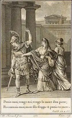 Voltaire nutzte für den Stoff Bayles Dictionnaire historique et critique und dessen Vorlage die Bibliotheke des Apollodor. Ort der Handlung ist die Vorhalle des Jupitertempels von Argos. Ériphyle heiratete den König, Feldherrn und Seher Amphiaraos, unterhielt aber weiter eine Beziehung mit dessen Konkurrenten und Feind Hermogide. Amphiaraos fällt einem Komplott zum Opfer. Alcméon, unter Hermongide zum Feldherrn aufgestiegen, verliebt sich in die Königin. Im Jupitertempel von Argos offenbart sich ihm der Geist des Vaters und der fordert Rache. Der Hohe Priester beweist Alcméon, dass er der totgeglaubte Sohn des Amphiaraos ist. Im Kampf mit Hermongide tötet Alcméon unbeabsichtigt die Mutter.[1]