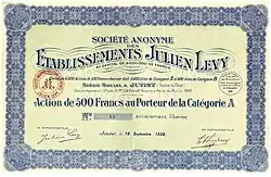 Aktie der 1930 mit einem Kapital von 3.000.000 Franc gegründeten Aktiengesellschaft mit Sitz in Juvisy