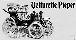 Ab 1897 wurden zusätzlich Automobile hergestellt und als Pieper vermarktet.[1] Dieser Bereich war stets ein Seitenzweig des Unternehmens; bereits 1903 wurde die Produktion wieder eingestellt[1]. Auto-Mixte aus Herstal produzierte ab 1906 benzin-elektrische Fahrzeuge nach „System Pieper“. Die Werksanlagen übernahm die Firma Imperia.