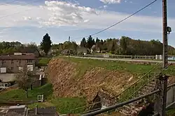 Erdwall, der die Wassermassen des Étang de la Crouzille zurückhält.