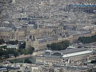 Die „Grande Galerie“ ist hinter dem ehemaligen Bahnhofsgebäude des Musée d’Orsay zu erkennen