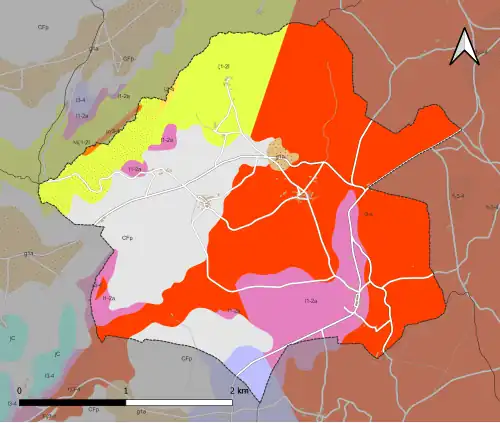 Der durch den Ortskern verlaufende Höhenrücken wird von zum nordöstlichen Aquitanischen Becken gehörenden Sedimenten des Hettangiums (Arkosen – Formation l1-4) aufgebaut, die hier über den Granodiorit transgredierten. Das Hettangium erscheint ebenfalls am rechten Seitenarm der Marcourive und in zwei kleinen Vorkommen bei Ribièras und Les Petits Champs. In der Nähe der Ziegelei La Tuilerie de Rippe zieht eine Nordnordwest-streichende Abschiebung durch. Dadurch werden stratigraphisch höherliegende Liasschichten (Formation l5-9), darunter die Tonsedimente des Aaleniums, aufgeschlossen – willkommener Ausgangsstoff für die örtlichen Ziegeleien.