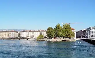 Die Insel befindet sich hinter der Pont du Mont-Blanc und ist über die Pont des Bergues, erreichbar. In für sie eingerichtete Unterkünften leben einige Enten und Schwäne.