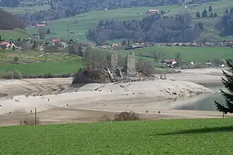 Die Île d’Ogoz entstand 1948 nach der Fertigstellung der Bogenstaumauer für den Greyerzersee in Rossens im Norden des Stausees. Auf der Insel stehen zwei Burgruinen und eine Kapelle. Die beiden nebeneinander stehenden Türme der Insel Ogoz gehörten mit ihren Annexbauten zu zwei voneinander unabhängigen Burgen. Beide waren Sitz einer geteilten Herrschaft und bestanden jeweils aus einem Turm mit zugehörigem Wohntrakt. Die beiden Türme entstanden im letzten Drittel des 13. Jahrhunderts. Vor dem Bau der Staumauer bildete der Hügel mit den Burgruinen eine Halbinsel im Flusslauf der Saane.
