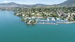 Bis zum Ende des 19. Jahrhunderts gab es an der Stelle der heutigen Île de Salagnon einen natürlich im Lac Léman (Genfersee) liegenden Felsen aus Granit namens Rocher aux Mouettes. Nur im Winter, wenn sich der Wasserspiegel absenkte, ragte er aus dem See. Er diente Fischern und den namensgebenden Möwen als Rastplatz. Schon ein gewisser Monsieur Barthélemy, Ingenieur am Bau des Tunnel de Burier auf der Simplonlinie, hatte sich zwischen 1859 und 1861 mit dem Gedanken getragen, den Felsen mit Gestein aus den nahen Tunnelbau anzuhäufen. Dieses Vorhaben kam aber nicht zur Ausführung.[1]