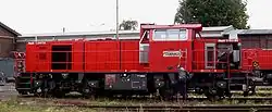 Die Antriebsanlage befindet sich im längeren Vorbau. Sie setzt sich aus einem aufgeladenen 12-Zylinder-Caterpillar-Dieselmotor sowie aus dem zur Kraftübertragung benötigten Voith-Turbowendegetriebe samt den Gelenkwellen und dem Achsgetriebe zusammen. Das Getriebe verfügt über einen Strecken- und einen Rangiergang; das Umschalten kann nur im Stillstand erfolgen. Die Loks verfügen über eine direkte und eine indirekte Bremse sowie eine Feststellbremse. Alle Loks haben Sifa und PZB90, eine Funkfernsteuerung und eine Vielfachsteuerung.