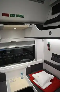 Ganze Abteile für 4 bis 6 Personen können von Familien und Gruppen als „Privatabteil“ reserviert werden,[23] aber es gibt inzwischen auch die Möglichkeit einzeln in einer Mini Cabin günstig zu reisen. Frauen können ihren Liegeplatz in einem Damenabteil buchen. Im Liegewagen sind Bettlaken, Polster sowie Decken frisch bezogen inkludiert, ebenso wie ein Frühstück (Kaffee/Tee, Mineralwasser, 2 Semmeln, Butter, Marmelade). Die Abteile sind von innen verschließbar und Wasch- und Toilettenräume befinden sich im Wagen. Getränke und Snacks können erworben werden.[24]