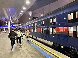 Die meisten in Nightjets eingesetzten Wagen waren bei der Einführung des Nachtreisezuges 2016 bereits vorher im Bestand der ÖBB. Zusätzlich wurden 15 Liegewagen und 42 Schlafwagen von DB Fernverkehr angekauft, die seit Herbst 2016 eingesetzt werden.[20] Zunächst beschränkten sich Umbauten auf technische Anpassungen (Einbau der für Italien vorgeschriebenen Türsteuerung), die Wagen blieben innerlich unverändert und erhielten lediglich das neue Farbschema. Erst in einem zweiten Schritt wurden ehemalige Sitzwagen zu neuen Liegewagen umgebaut, wobei eine zeitgemäße Innenraumgestaltung umgesetzt wurde.