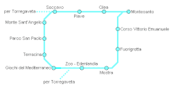 Zusätzlich soll der Bahnhof Cilea gebaut werden, der über Aufzüge mit dem 120 m höher liegenden Bahnhof Quattro Giornate der U-Bahn-Linie 1 verbunden sein soll. Der Bahnhof Edenlandia soll unterirdisch gelegt werden und in Kennedy umbenannt werden.[22]