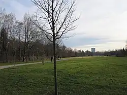 Der Park des Ökologischen Bildungszentrums befinden sich auf einem ehemaligen Kies- und Lehmabbaugebiet, das ursprünglich für eine Trasse der Tangente 5-Ost reserviert war. Gegen Ende der 1980er Jahre wurde jedoch diese Fläche umgewidmet, um sie für kulturelle Zwecke und zur Naherholung zu nutzen. Im Rahmen einer Bürgerbeteiligung wurden in der Entstehungsphase des ÖBZ die unterschiedlichen Nutzungsbereiche fixiert.