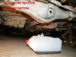 Anstelle einer gewöhnlichen Schraube kann auch eine spezielle Ölablassschraube mit Ventil (gelegentlich auch „Bochumer Stopfen“ genannt) verwendet werden.