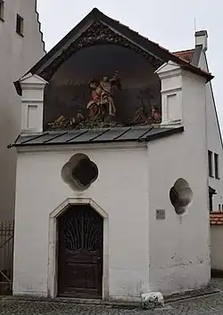 Die Kapelle auf polygonalem Grundriss wurde nach dem Ende des Dreißigjährigen Krieges 1664 errichtet. Im Innenraum des Erdgeschosses befindet sich eine geschnitzte Pietà aus dem 1. Viertel des 18. Jahrhunderts. Im Giebelfeld befindet sich ein Relief mit einer Ölberggruppe. Dargestellt sind Jesus und ein Engel mit einem Kelch in der erhobenen Hand und die schlafenden Jüngern zu Füßen Jesu. Das Relief wurde ursprünglich Johann Michael Fischer zugeschrieben, heute wird Franz Karl Schwertle als Bildhauer angenommen.