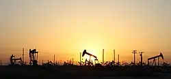 Wegen der bereits vorhandenen Infrastruktur (Wege, Stromleitungen) eignen sich Ölfelder gut für Windenergieparks. -
