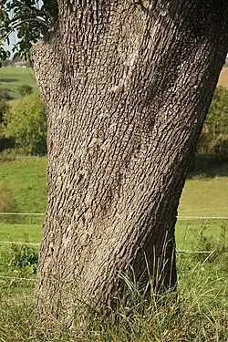 Der typisch gedrehte Stamm und die Borke einer 'Ölligsbirne'