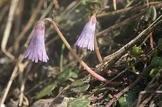 Der Blütenstandsschaft ist stets 1-blütig. Die Blütenstiele sind locker drüsenhaarig. Sie verkahlen in der Folge meist etwas. Die zwittrige Blüte ist fünfzählig mit doppelter Blütenhülle. Die röhrig-glockige Krone ist meist von weißer bis sehr blasspurpurner bzw. blasslila Farbgebung. Sie ist meist nur bis zu 1/4 ihrer Länge in einen fransigen Saum zerschlitzt. Schlundschuppen sind keine vorhanden. Der Griffel ist kürzer als die Krone, die Staubbeutelspitze ist unbegrannt. Als Frucht wird eine Kapsel gebildet, die sich mit fünf Zähnen öffnet.[1][3][4]