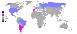 - Teilnahmeverzicht/zurückgezogen: 3× (14 %; 1930, 1950 und 1962)