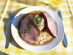 - Schweinsbraten mit Knödel (Semmelknödel oder Erdäpfelknödel)