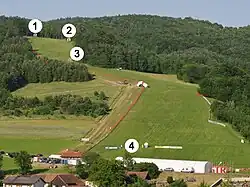 ![]() 1 = Super-G-Start 2 = Riesenslalomstart 3 = Slalomstart 4 = Ziel |