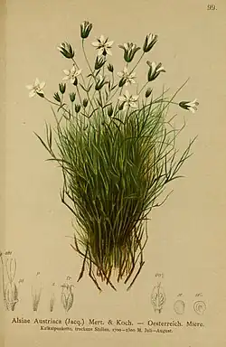 - ↑ Karol Marhold, 2011: Caryophyllaceae.: Datenblatt Minuartia austriaca In: Euro+Med Plantbase - the information resource for Euro-Mediterranean plant diversity.