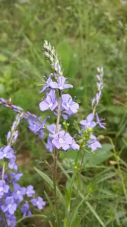 - Großer Ehrenpreis (Veronica austriaca subsp. teucrium (L.) D.A.Webb, Syn.: Veronica crinita Kit., Veronica teucrium L. subsp. teucrium, Veronica teucrium subsp. crinita (Kit.) Velen., Veronica teucrium subsp. pseudochamaedrys (Jacq.) Nyman; wird von manchen Autoren auch als eigene Art angesehen: Veronica teucrium L.): Sie kommt in Mitteleuropa, in Südeuropa und in der Türkei vor.[2]