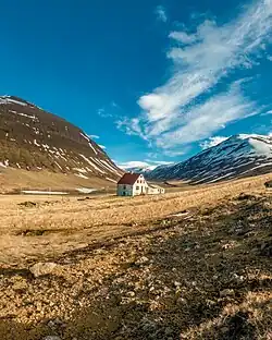 Die Landschaft ist von den vielfach über 1.000 m hohen Bergen der Halbinsel Tröllaskagi, die man hier überquert, geprägt.