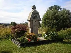 - Denkmal für die Gefallenen des Ersten Weltkrieges, geweiht 1925. Das bei Zerstörung des Dorfes umgestürzte Denkmal wurde 1990 wiederentdeckt und zwei Jahre später aufgerichtet. Nach der Restaurierung und Anbringung einer neuen Ehrentafel mit den Namen der Gefallenen des Zweiten Weltkrieges erfolgte im Oktober 2000 die feierliche Weihe.