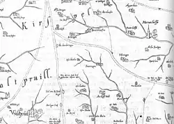 Eine Karte von Jordan von der Weihe „Eigentliche Discription. Theil des bergischen Ambts Windeck sampt anstossenden Grentzen“ (s. o.) von 1607[4] nennt „Oberholtz“ in der Nähe der Alten Eisenstraße, oberhalb einer „Zach Eich am Berssieffen“ (= Perseifen) und links von einem mit einem Haus gekennzeichneten Ort namens „Rentzhain“ (= Reinshagen). Die Lage auf der Karte entspricht nicht genau der natürlichen Lage.