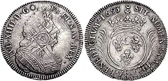 Besonders auffällig in der Ausführung sind die überprägten Münzen Frankreichs in der Regierungszeit König Ludwigs XIV. (1643–1715) und Ludwigs XV. (1715–1774). Sie stammen aus der sogenannten Epoche der Réformation. Das französische Wort Réformation bedeutet auf Deutsch Umformung oder Umprägung. Verwendet wurden z. B. der Écu, der 1⁄2 Écu sowie der Louis d’or und andere Ausgaben. Vor allem während der Regierungszeit des Sonnenkönigs Ludwig XIV. wurden die umlaufenden Münzen zu einem festgelegten Kurs eingezogen, mit neuen Münzstempeln überprägt und zu einem höheren Zwangskurs wieder ausgegeben. Frankreich verschaffte sich damit die notwendigen Mittel für Raubkriege gegen seine Nachbarn, die Niederlande und das Heilige Römische Reich. Die Überprägung der eingezogenen Stücke wurde zum Teil so schlecht ausgeführt, dass noch Partien des Münzbildes des vorherigen Gepräges sichtbar sind.[6][7]