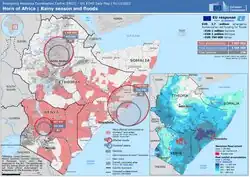 - ↑ a b c Somalia - Floods, update (DG ECHO, UN OCHA, NOAA). In: erccportal.com. Emergency Response Coordination Centre (ERCC), 29. November 2023, abgerufen am 14. Dezember 2023.