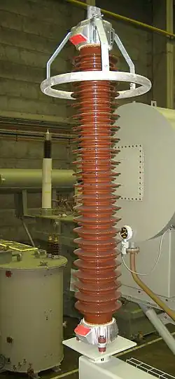 Heutzutage sind Varistoren der Standard zum Blitzschutz von Transformatoren, die an Freileitungen angeschlossen sind. Dabei werden Stapel aus Zinkoxid-Varistor-Scheiben entsprechend der Nennspannung in einem Stützisolator untergebracht.