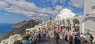 Touristen auf der Insel Santorin (Griechenland)