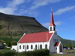 Die Kirche befindet sich im Ort Þingeyri am Dýrafjörður.
