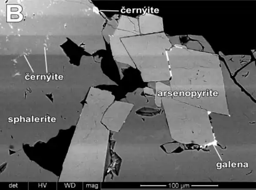- ↑ a b Černýite. In: John W. Anthony, Richard A. Bideaux, Kenneth W. Bladh, Monte C. Nichols (Hrsg.): Handbook of Mineralogy, Mineralogical Society of America. 2001 (englisch, handbookofmineralogy.org [PDF]).