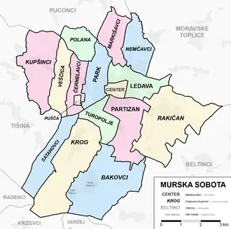 Die Stadtgemeinde Murska Sobota ist untergliedert in