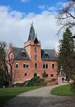 Der 1844 aus der Feste entstandene neogotische Bau wurde zwischen 1894 und 1896 durch den Architekten Jan Kotěra um einen Südflügel im Jugendstil erweitert. Dabei entstand auch der große Turmanbau.