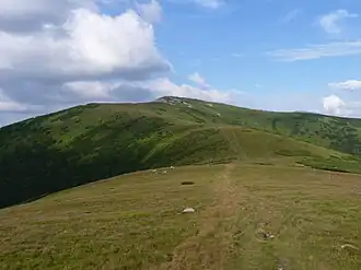 Der felsige und wenig auffällige Berg befindet sich in dem aus Granit bestehenden Teil des Gebirges.