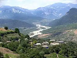 Der Bezirk umfasst 2074 km². Die Landschaft gehört zum Großen Kaukasus und ist teilweise bewaldet. Es gibt Vorkommen an Ton und viele Mineralquellen.[1]